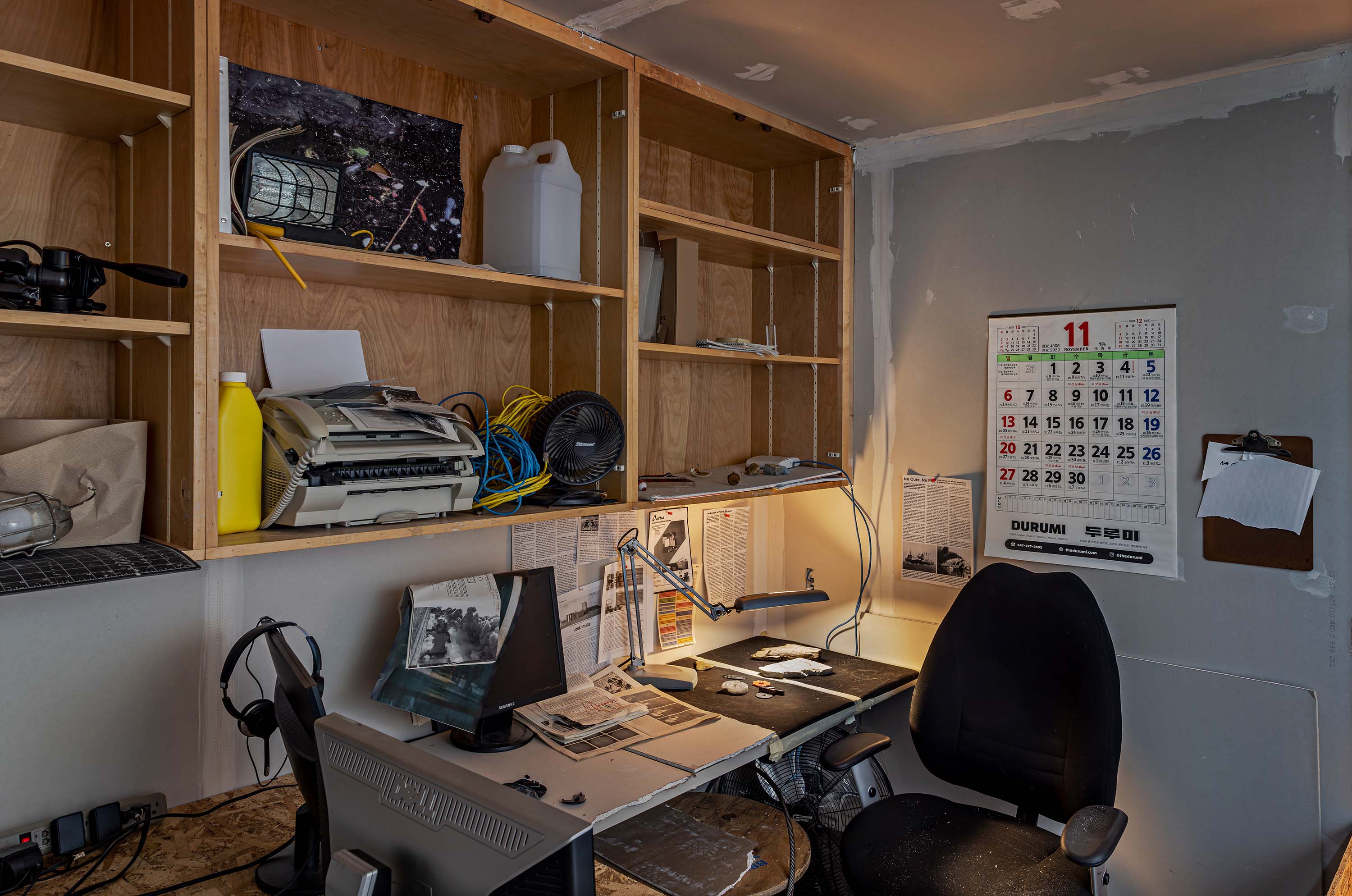 2025Office is an immersive installation, presented as part of the solo exhibition Salvage Archives at the Kitchener-Waterloo Art Gallery.